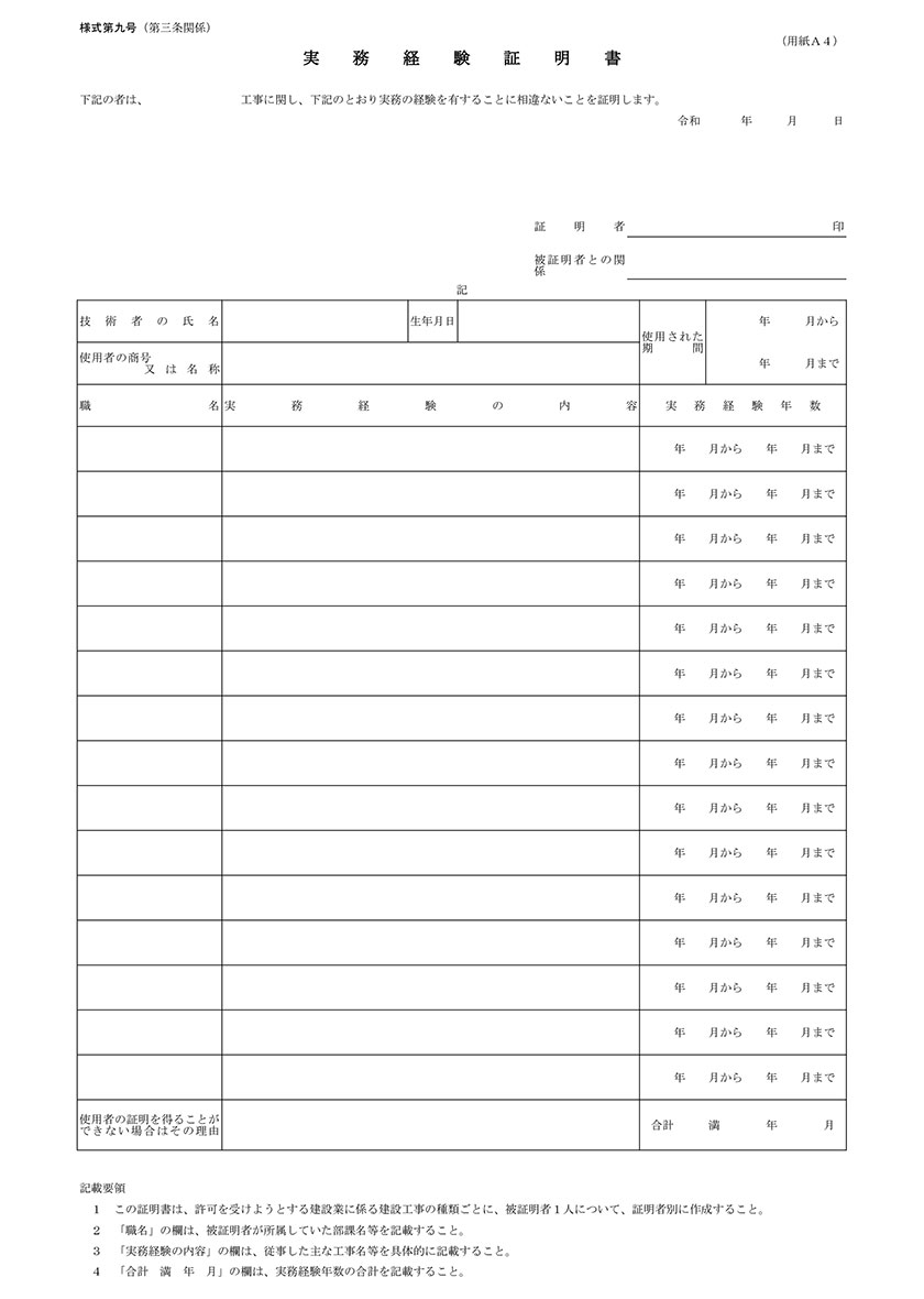 実務経験証明書 2026年1月6日 最終更新日時 : 2026年1月6日 hamano ファイル形式Excel説明実務経験証明書 民間工事仕様の実務経験証明書です。Excel版ですので会社の状況に合わせて修正可能です。 実務経験証明書 1 ファイル 42.00 KB ダウンロード 無料会員登録はこちらから 登録後、書式を無制限でダウンロードできます。